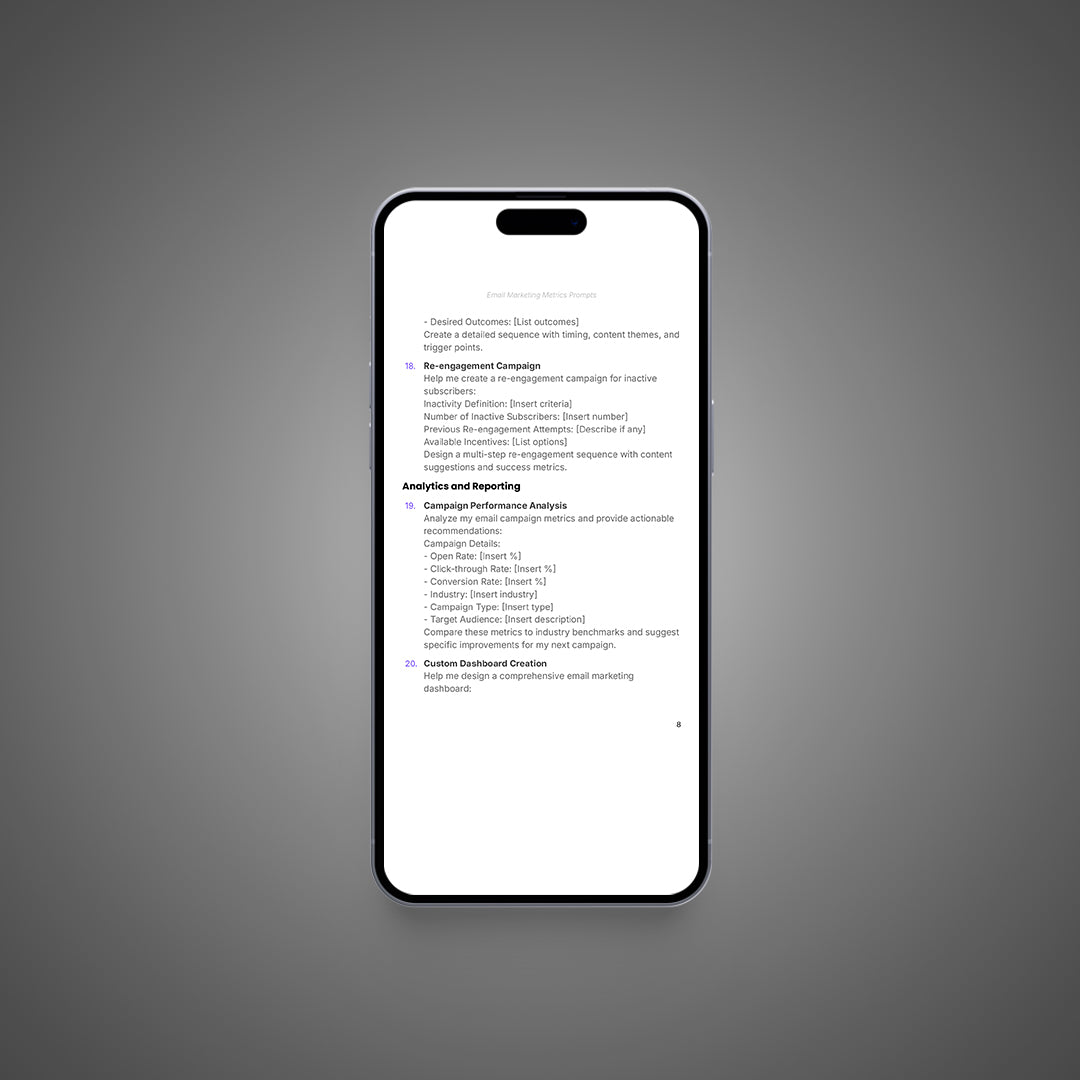 This pack is a complete, easy-to-follow guide designed to help your customers understand, track, and improve key email marketing metrics—so they can create campaigns that truly perform. By turning complex analytics into simple, actionable strategies, it empowers marketers and business owners to boost engagement, increase conversions, and achieve long-term success.